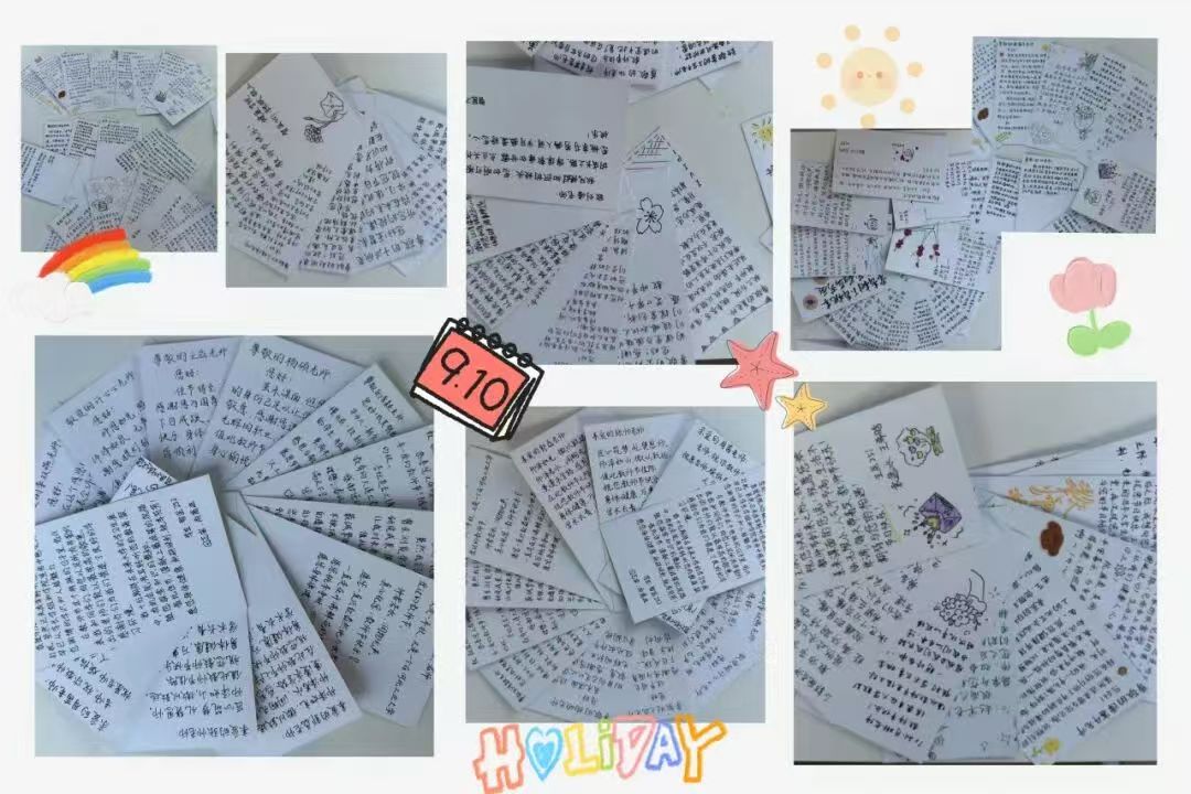 与此同时,学院大一新生以班级为单位,开展“手写祝福寄师恩”活动,新生随机匹配给学院老师手写祝福,健康的缘分就此开启。同学们拿起纸笔,将对老师的好奇、尊敬与期待化作真挚文字:“感谢您耐心解答我们的疑问,让我们快速适应大学生活”“期待在您的课堂上收获更多知识,未来一起加油”……一张张设计精巧、字迹工整的贺卡,或搭配手绘图案,或粘贴干花装饰,饱含着新生们对老师的美好祝愿。活动现场,新生代表还将贺卡逐一送到教师手中,通过行动传递感恩之情。